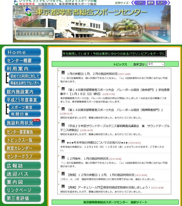 東京都障害者総合スポーツセンターの旧ホームページを模倣したサイトにご注意ください