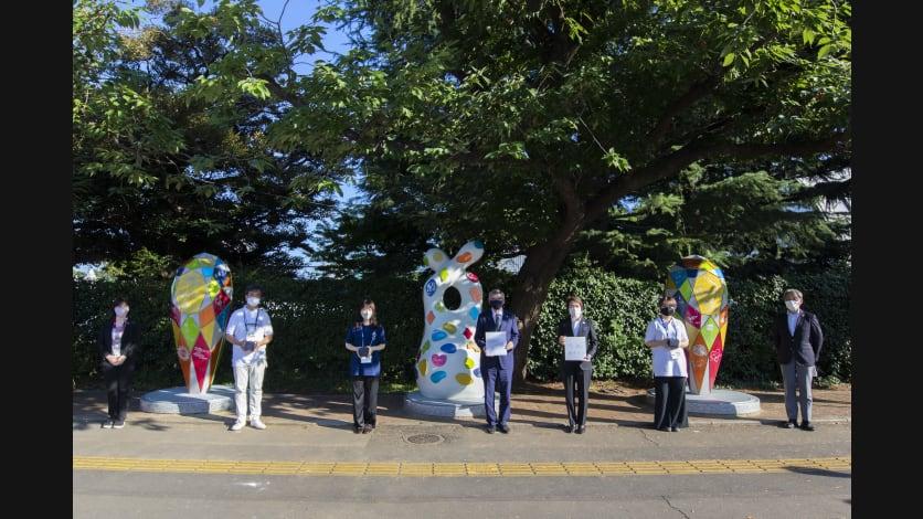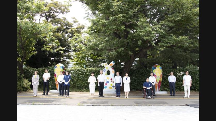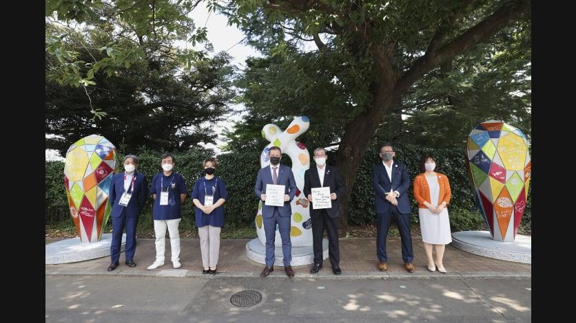 お披露目式には東京2020大会マスコットの「ミライトワ」と「ソメイティ」も参加し、モニュメントのお披露目を祝福しました。