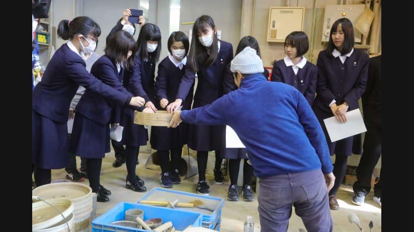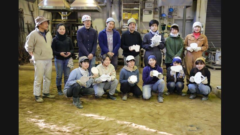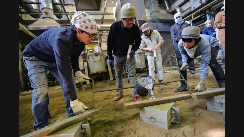 モニュメントの制作には、モニュメントの本体を鋳造する工程とメッセージのプレートを鋳造する工程があります。2020年1月29日には、ワークショップに参加した福島県立安積黎明高校の生徒の皆さんが、プレートを鋳造する工程を見学しました。