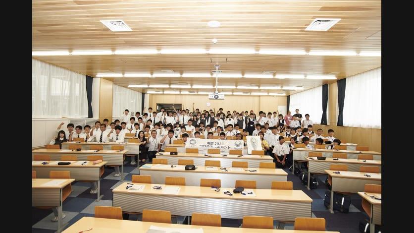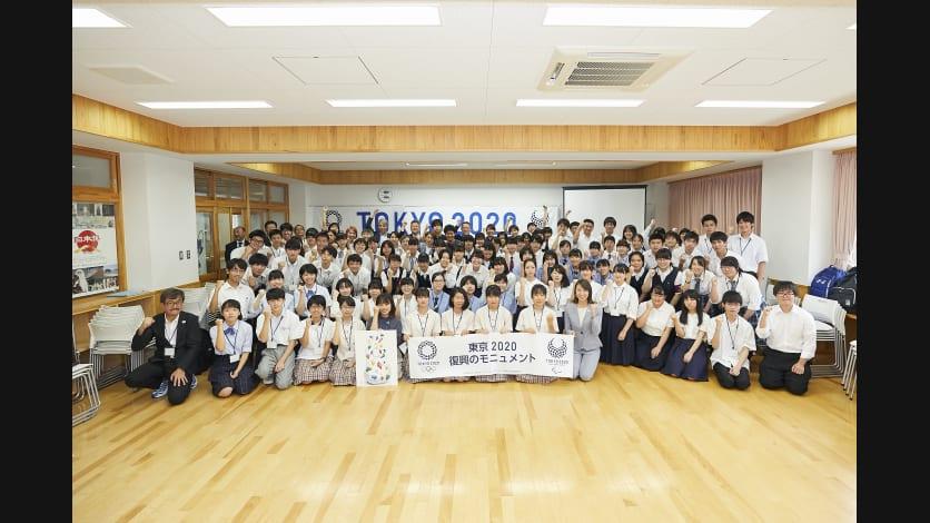 2019年8月の宮城県でのワークショップに参加した宮城県気仙沼向洋高等学校3年の小野寺郁弥さんと吉田朔弥さんもお披露目式にかけつけました。小野寺さんは「モニュメントをとおして東京2020大会に関われた実感が湧きました。宮城で東京2020大会を象徴するモニュメントとなってほしいです。」、吉田さんは「自分たちの考えたデザインが形となっていることに感動しました。東京2020大会のアスリートの活躍を伝え、震災での支援への感謝の気持ちを伝える存在になってほしいです。」とコメントしました。