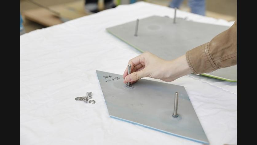 ワークショップで決定したデザインと被災地の中高生が作成したメッセージをもとに、東京藝術大学の学生が再生アルミを材料としてモニュメントを制作していきます。