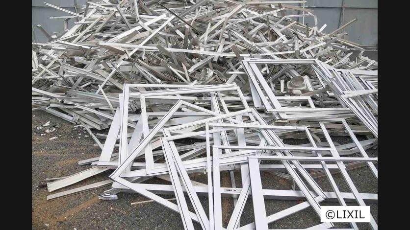 1. 仮設住宅の窓などのアルミ建材を回収、再生アルミに