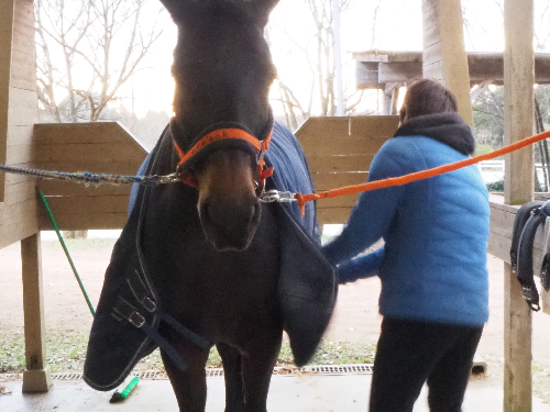 石井選手は右上腕欠損という障がいがあるためどのような馬でも良いというわけにはいかないのですが、この馬は性格が良くてお利口で、一昨年(2018年)には自分が全日本大会で勝っている馬でもあります。石井選手は、7年ほど前にもここにメンバーとして乗りに来ていましたが、いったんここを離れ、それからこの馬に出会ってまた戻ってきて、先日(2020年11月)の第4回全日本パラ馬術大会もこの馬で出場しました。