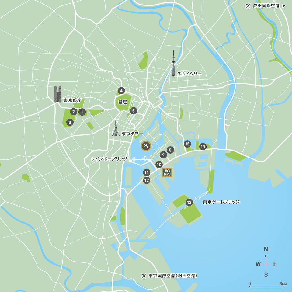 競技会場マップ(部分拡大図) オリンピック パラリンピック オリンピック 競技会場マップ(ヘリテッジゾーン&東京ベイゾーン)に戻る 1 2 3 4 5 6 7 11 12 13 14 15 16 17 18 19 20 21 22 23 24 other01 other02 numオリンピックスタジアム 【開会式・閉会式】 陸上競技 サッカー num東京体育館 卓球 num国立代々木競技場 ハンドボール num日本武道館 柔道 空手 num東京国際フォーラム ウエイトリフティング num国技館 ボクシング num馬事公苑 馬術 num武蔵野の森総合スポーツプラザ バドミントン 近代五種 num東京スタジアム サッカー ラグビー 近代五種 num武蔵野の森公園 自転車競技(ロード) num有明アリーナ バレーボール num有明体操競技場 トランポリン 新体操 体操競技 num有明アーバンスポーツパーク 自転車競技(BMXフリースタイル) 自転車競技(BMXレーシング) スケートボード num有明テニスの森 テニス numお台場海浜公園 マラソンスイミング トライアスロン num潮風公園 ビーチバレーボール num青海アーバンスポーツパーク 3x3 バスケットボール スポーツクライミング num大井ホッケー競技場 ホッケー num海の森クロスカントリーコース 馬術 num海の森水上競技場 カヌー(スプリント) ボート numカヌー・スラロームセンター カヌー(スラローム) num夢の島公園アーチェリー場 アーチェリー num東京アクアティクスセンター アーティスティックスイミング 飛込 競泳 num東京辰巳国際水泳場 水球 num札幌大通公園 陸上競技 num幕張メッセ Aホール テコンドー レスリング num幕張メッセ Bホール フェンシング num釣ヶ崎海岸サーフィンビーチ サーフィン numさいたまスーパーアリーナ バスケットボール num陸上自衛隊朝霞訓練場 射撃 num霞ヶ関カンツリー倶楽部 ゴルフ num江の島ヨットハーバー セーリング num伊豆ベロドローム 自転車競技(トラック) num伊豆MTBコース 自転車競技(マウンテンバイク) num富士スピードウェイ 自転車競技(ロード) num福島あづま球場 野球・ソフトボール num横浜スタジアム 野球・ソフトボール num札幌ドーム サッカー num宮城スタジアム サッカー num茨城カシマスタジアム サッカー num埼玉スタジアム2002 サッカー num横浜国際総合競技場 サッカー num選手村(OV) num IBC/MPC(東京ビッグサイト) パラリンピック 競技会場マップ(ヘリテッジゾーン&東京ベイゾーン)に戻る 1 2 3 4 5 8 9 10 11 12 13 14 15 other01 other01 numオリンピックスタジアム 【開会式・閉会式】 陸上競技 num東京体育館 卓球 num国立代々木競技場 車いすラグビー バドミントン num日本武道館 柔道 num東京国際フォーラム パワーリフティング num馬事公苑 馬術 num武蔵野の森総合スポーツプラザ 車いすバスケットボール num有明アリーナ 車いすバスケットボール num有明体操競技場 ボッチャ num有明テニスの森 車いすテニス numお台場海浜公園 トライアスロン num青海アーバンスポーツパーク 5人制サッカー num海の森水上競技場 カヌー(スプリント) ボート num夢の島公園アーチェリー場 アーチェリー num東京アクアティクスセンター 水泳 num幕張メッセ Aホール シッティングバレーボール num幕張メッセ Bホール テコンドー 車いすフェンシング num幕張メッセ Cホール ゴールボール num陸上自衛隊朝霞訓練場 射撃 num伊豆ベロドローム 自転車競技(トラック) num富士スピードウェイ 自転車競技(ロード) num選手村(PV) num IBC/MPC(東京ビッグサイト)