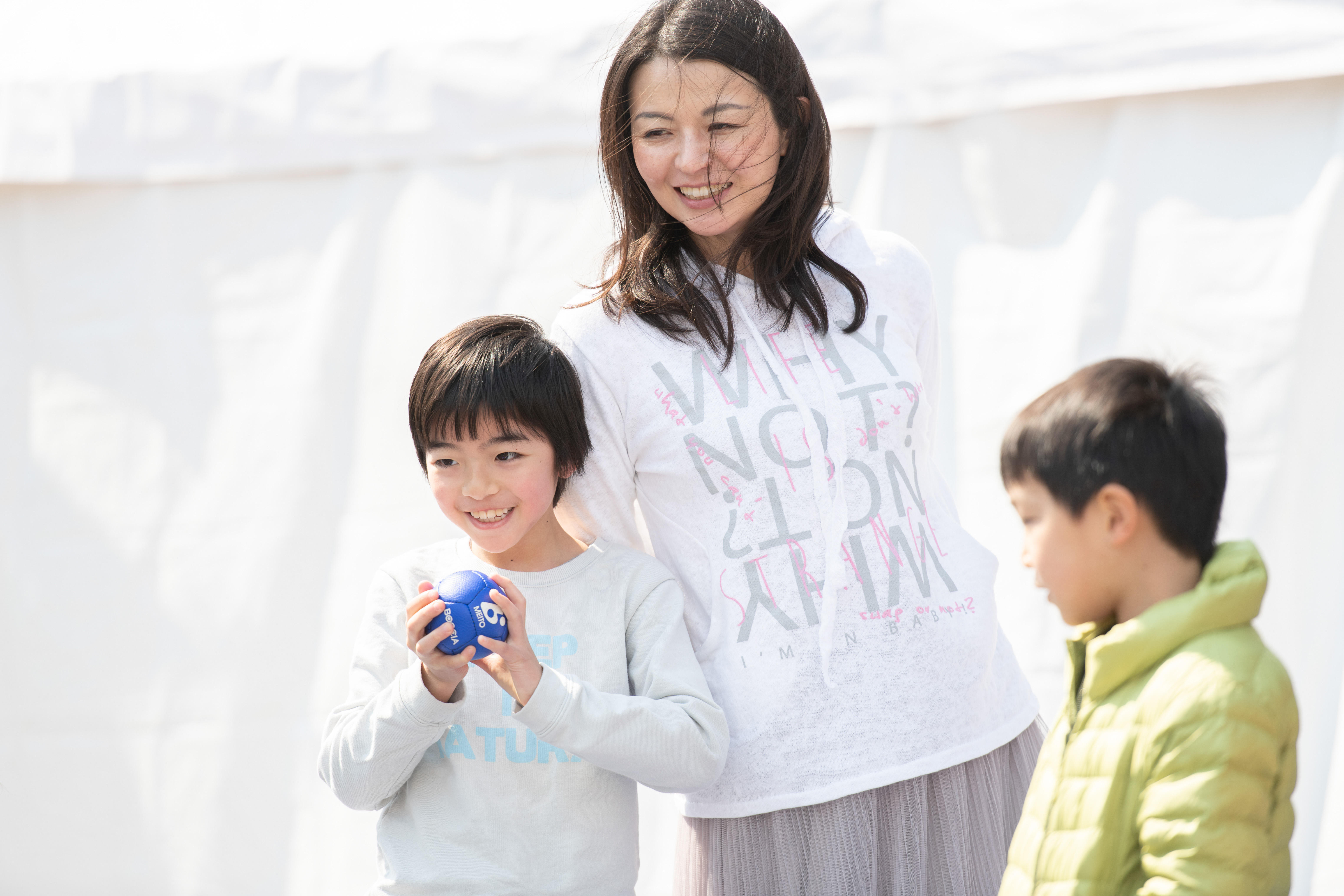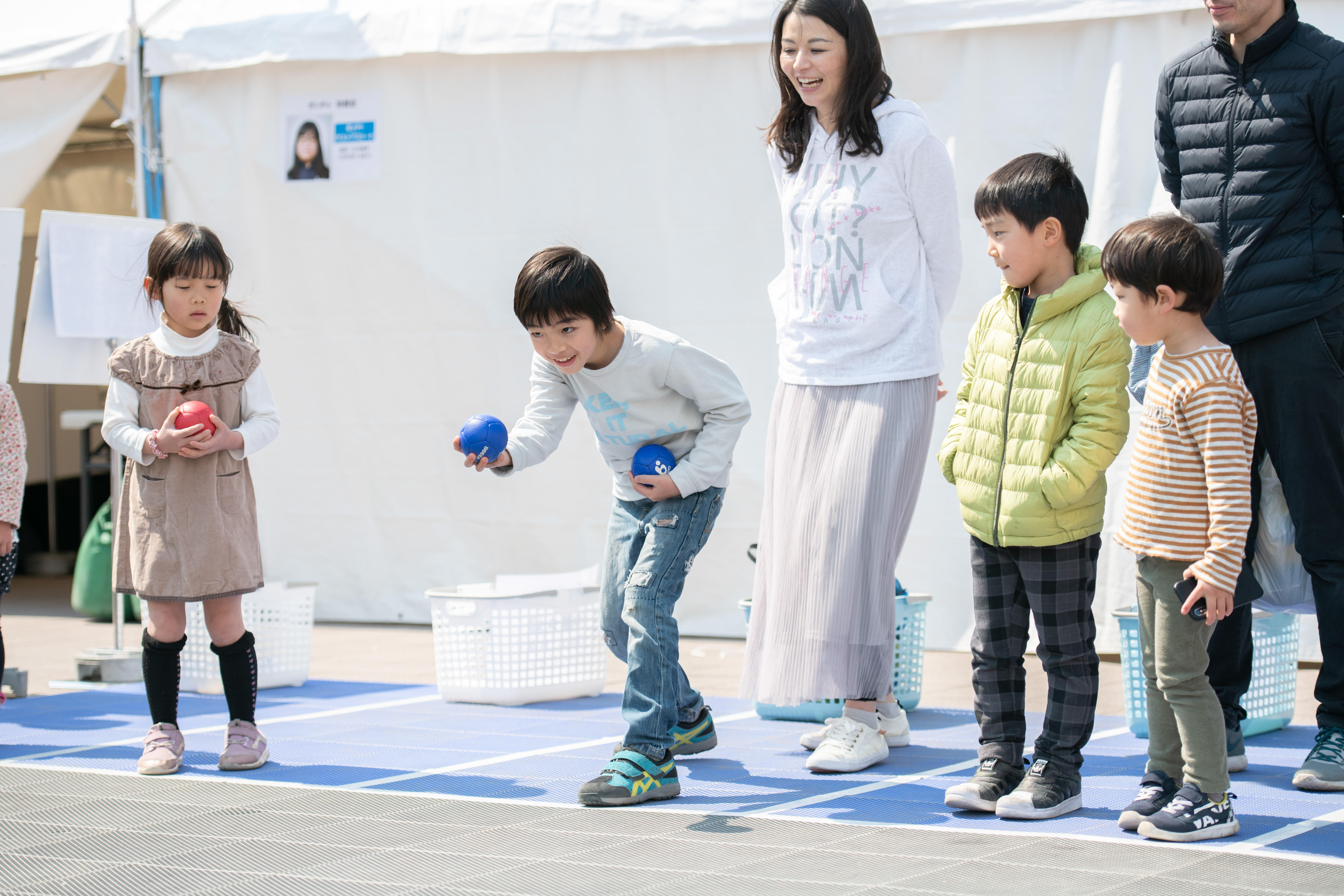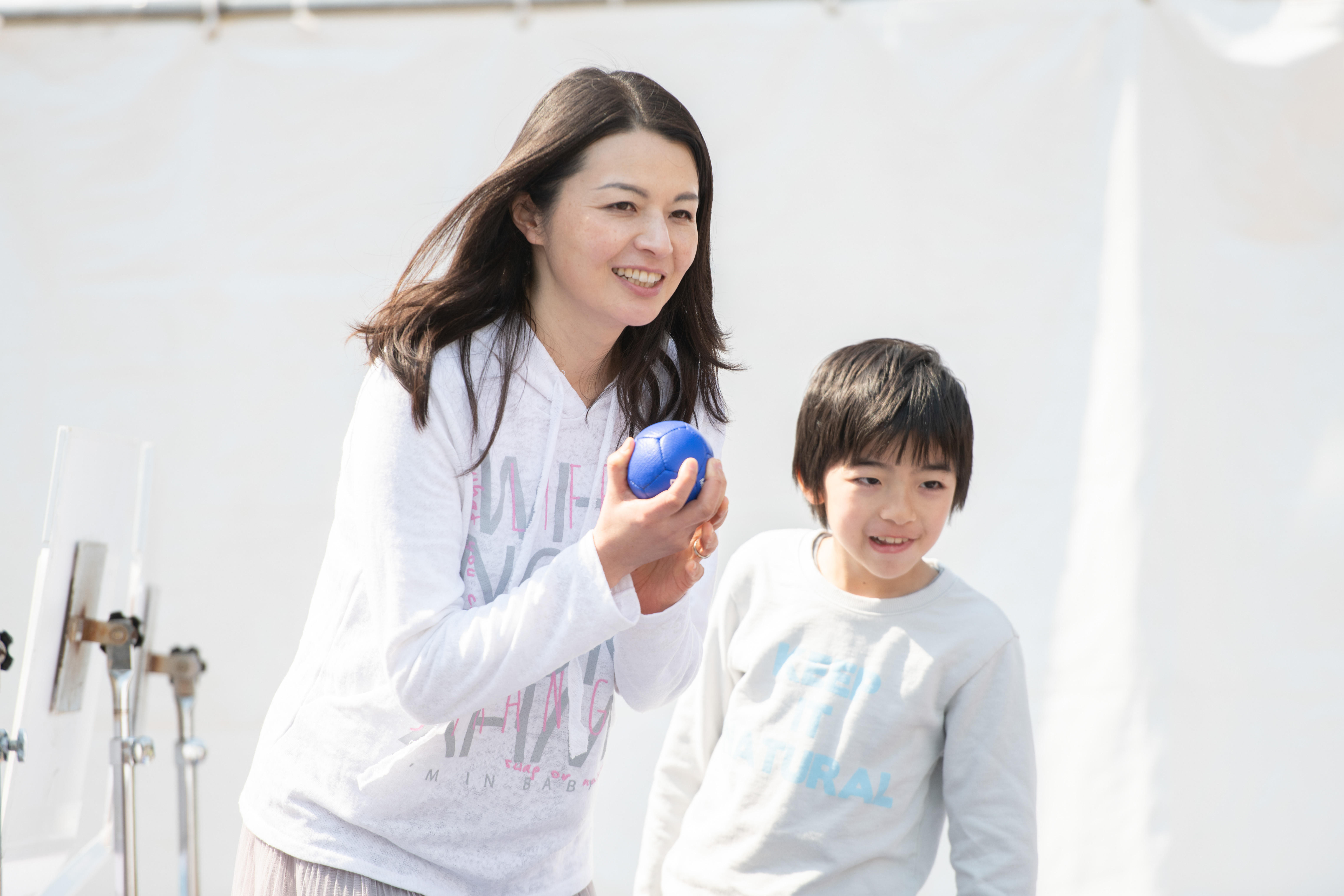 イベントに遊びにきていた親子も参加。小学校2年生になる息子さんは好奇心が旺盛でふだんからいろいろなことに挑戦したがるらしく、ボッチャ体験にもやる気まんまんで参加してくれました。せっかくだからとお母さまも体験。