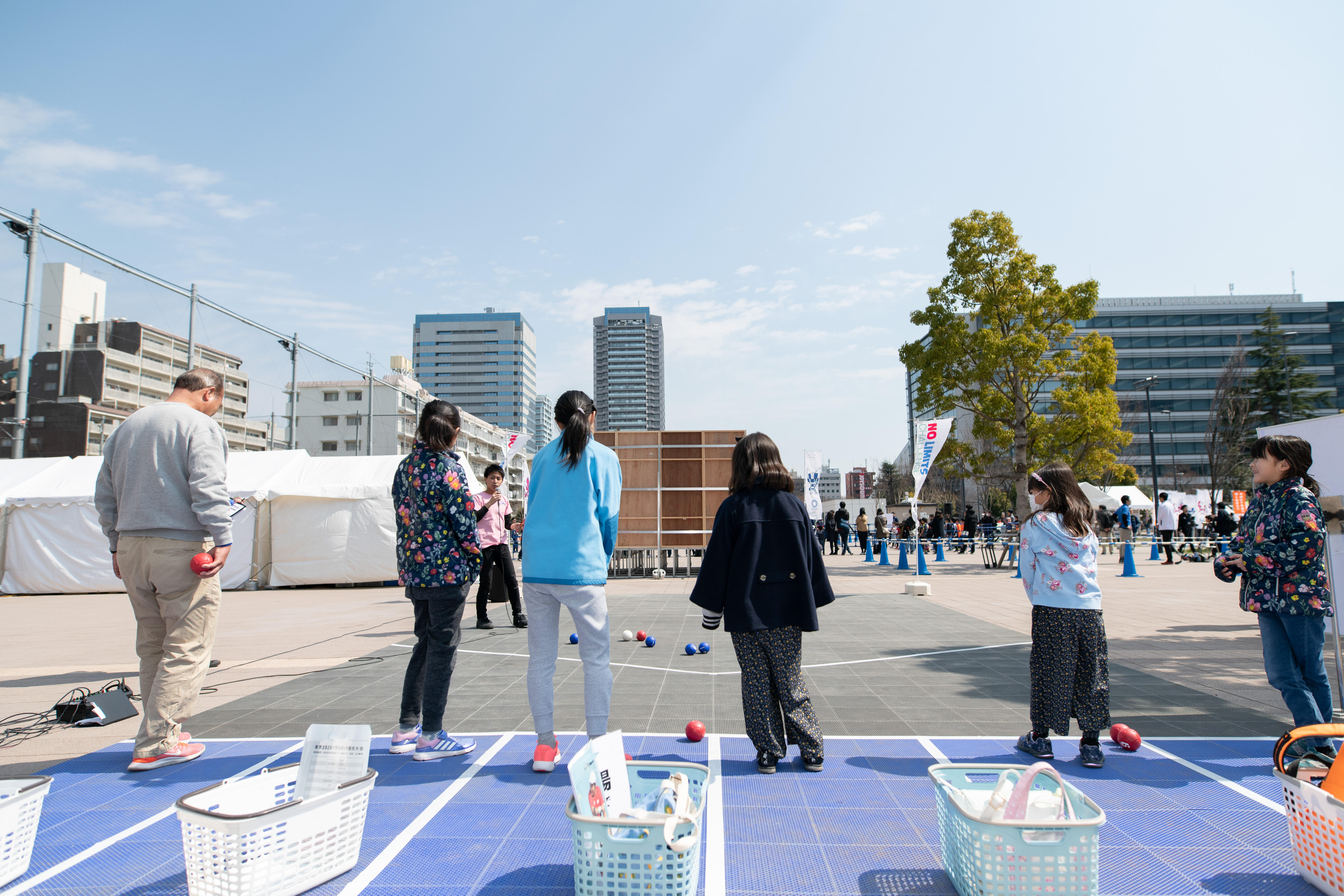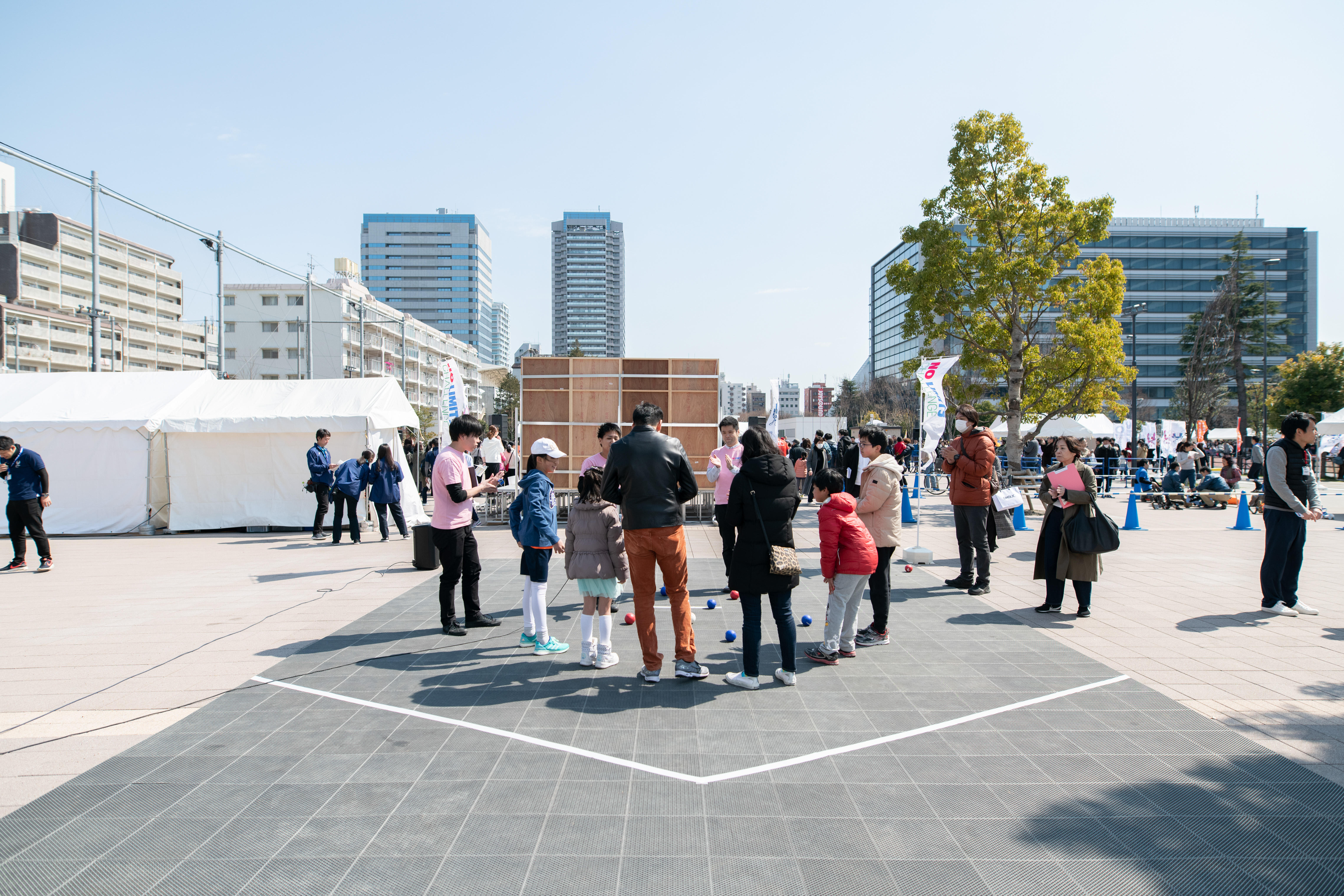 年齢や性別関係なく楽しめるというのがボッチャの魅力のひとつ。体験者も老若男女さまざまな人が集まりました。