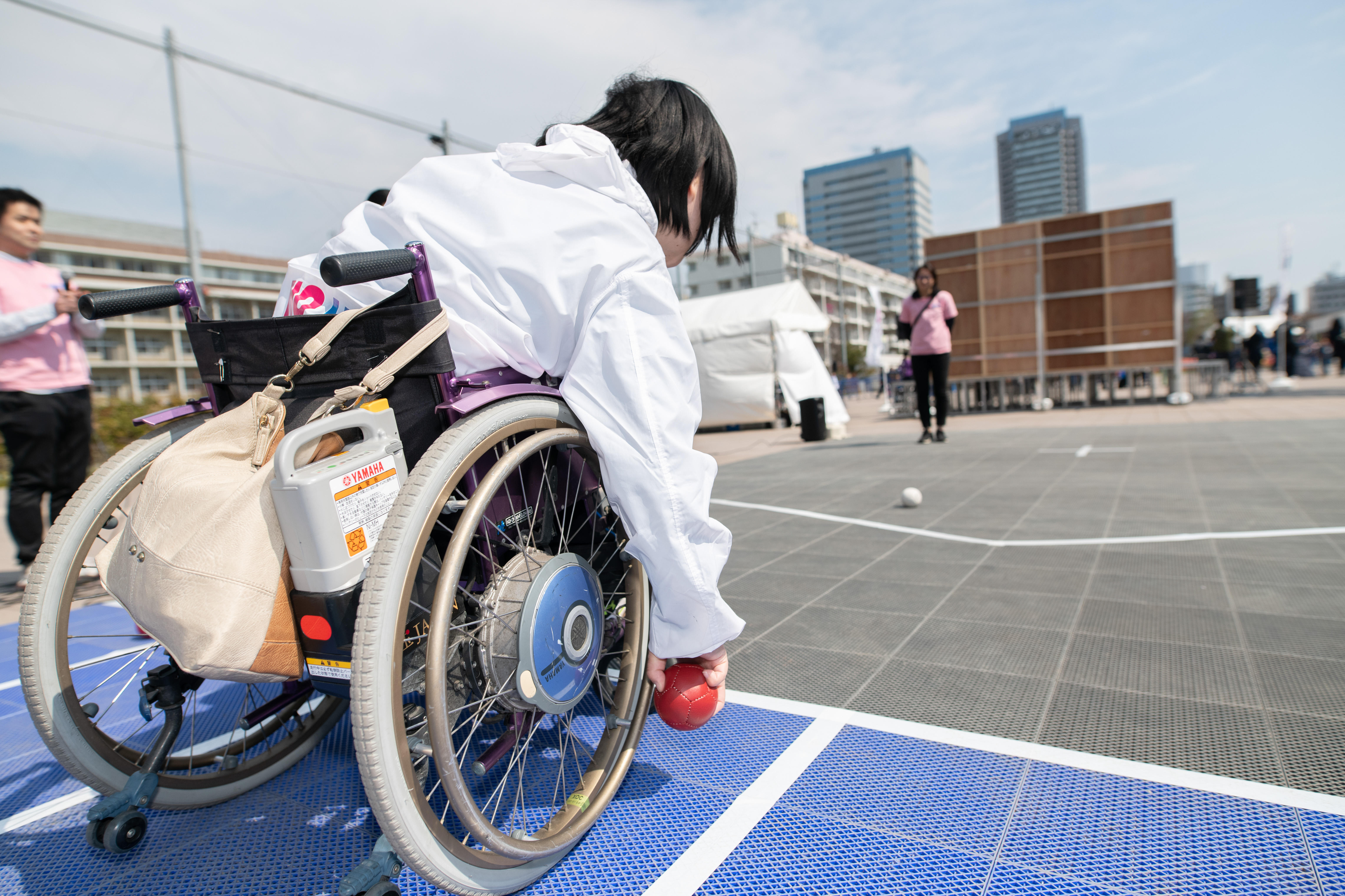 今回、体験した競技は「ボッチャ」。もともとはヨーロッパで生まれた、重度脳性麻痺者や同程度の四肢重度機能障がい者のために考案されたスポーツで、1988年のソウル大会からパラリンピックの正式競技になりました。