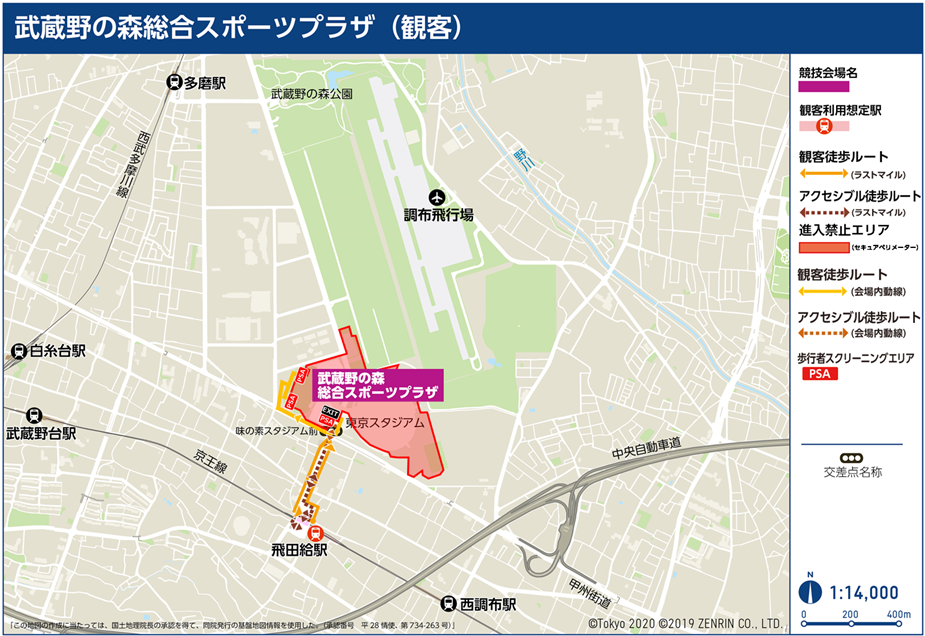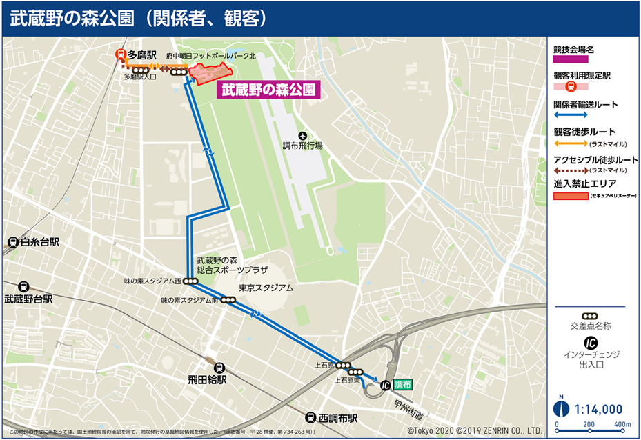 飛田給駅から東京スタジアム(オリ:サッカー・近代五種・ラグビー)、武蔵野の森総合スポーツプラザ(オリ:バドミントン・近代五種/パラ:車いすバスケットボール)までのラストマイル