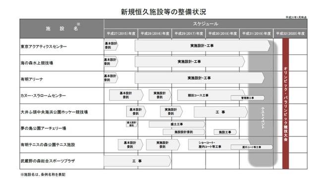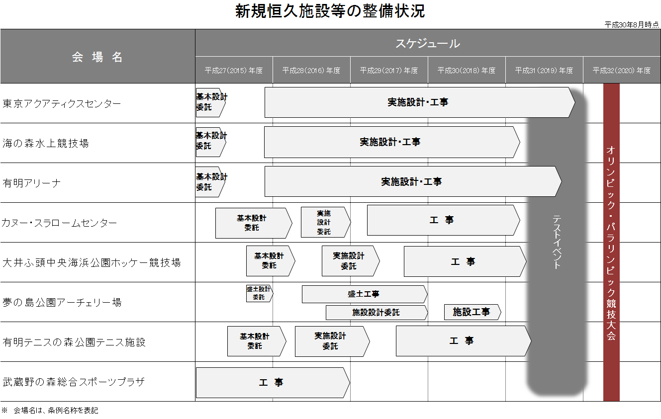 東京都が整備する競技会場等のスケジュール(予定)は、下記のとおりです。
