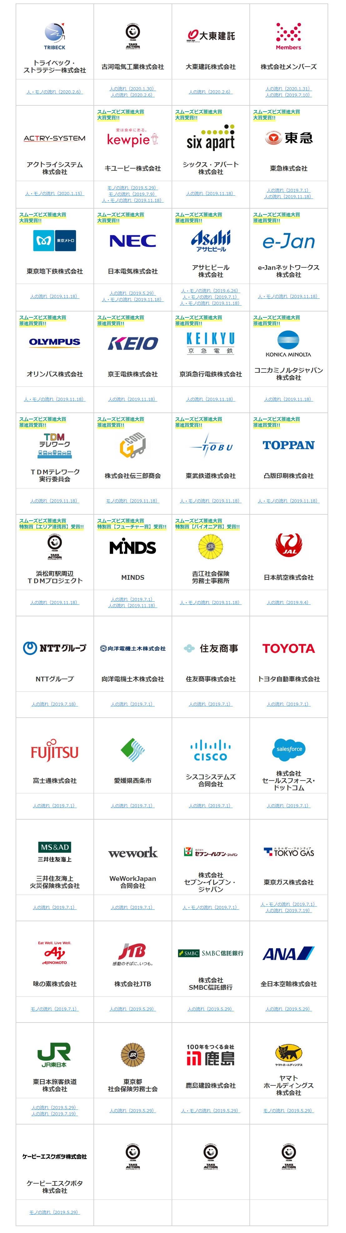 - ・2020TDM推進プロジェクトへの協力者及び参加企業