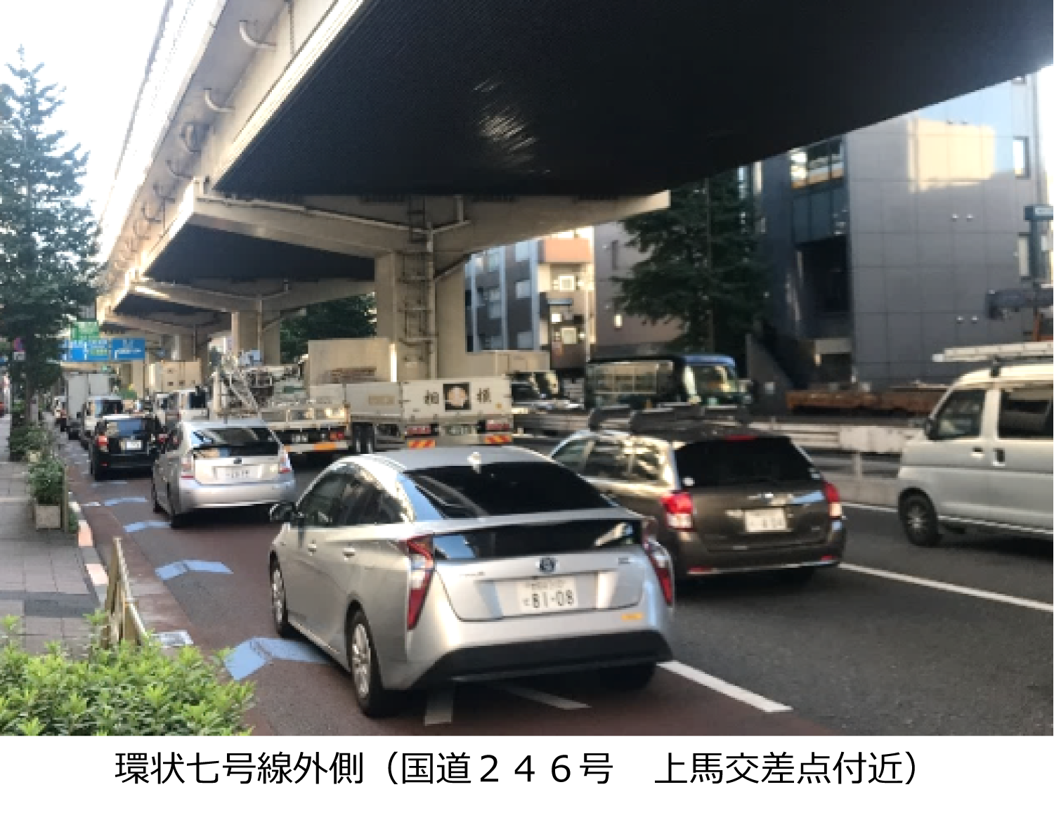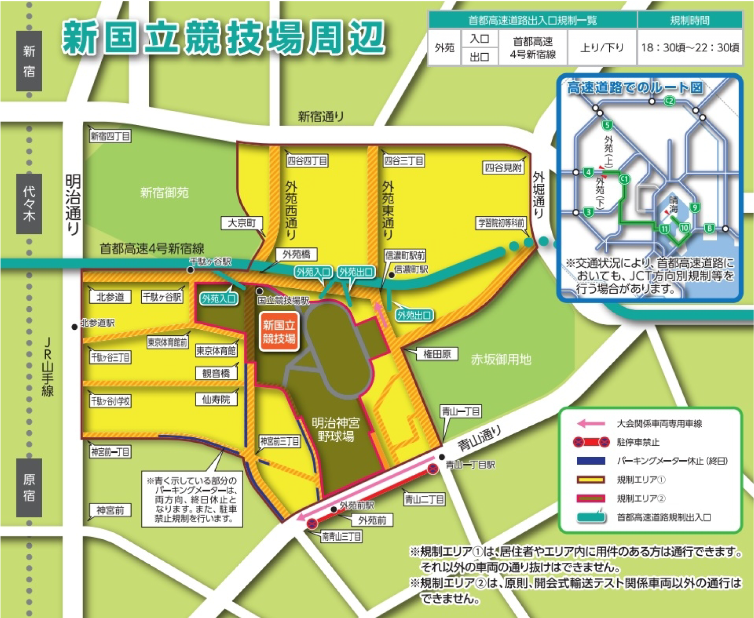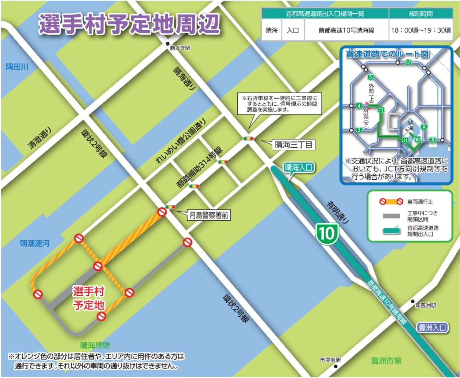 - 環状七号線から都心方向に流入する車の通行制限。