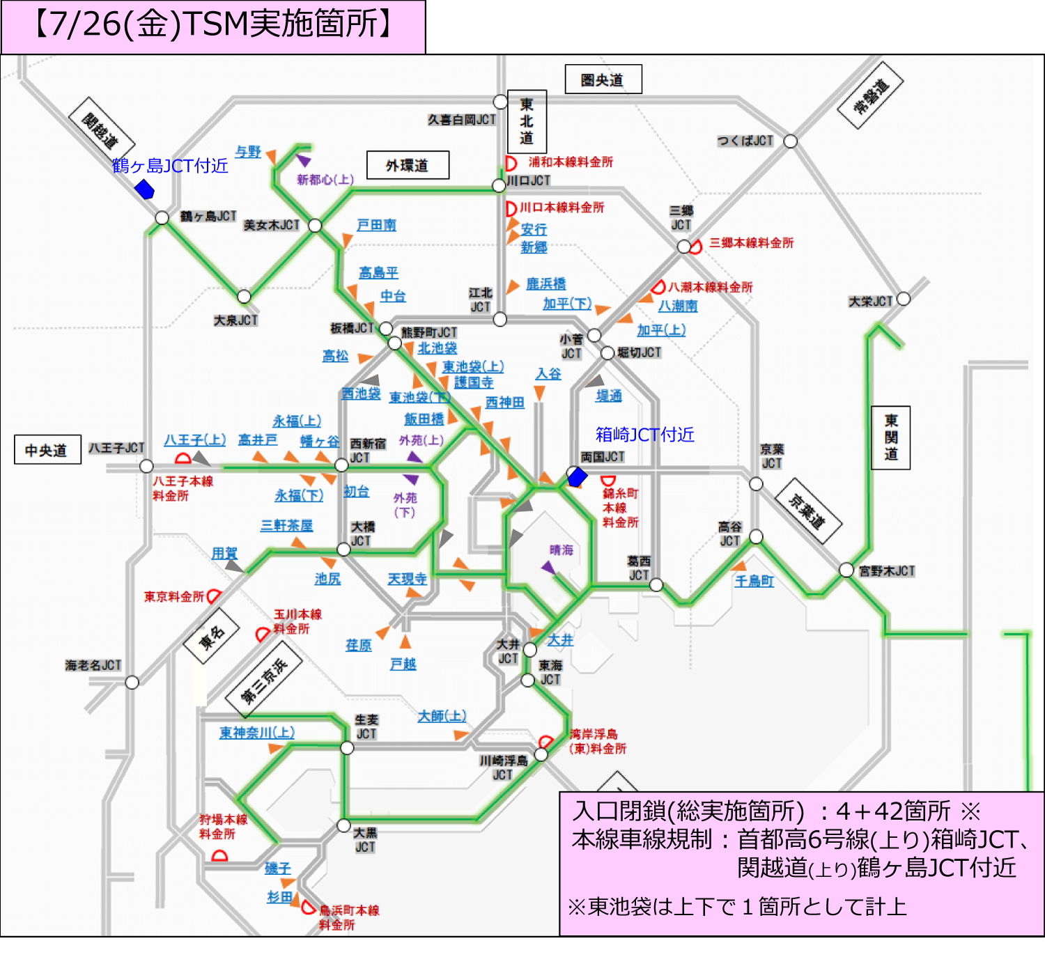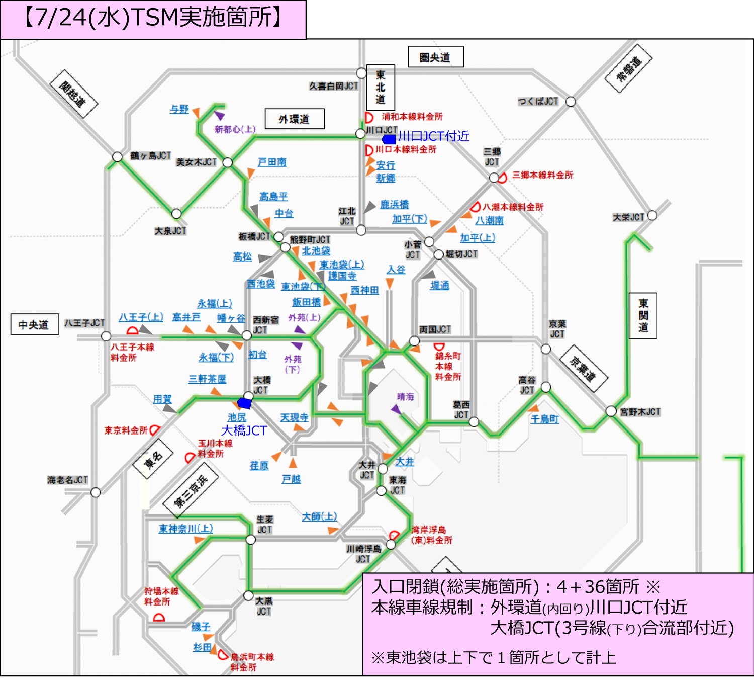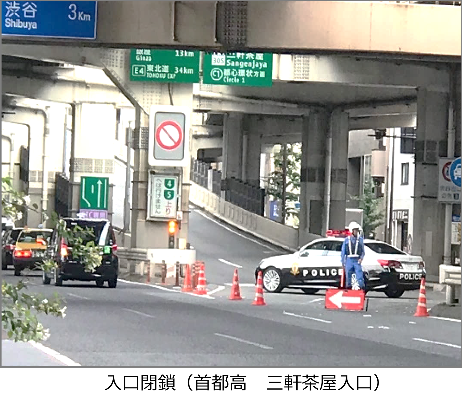 - 本線料金所から都心方向に流入する車の通行制限。