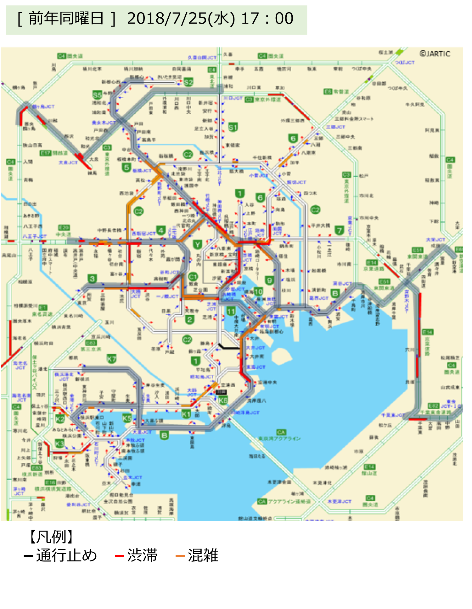 - 交通状況により高速道路の入口閉鎖等も実施。