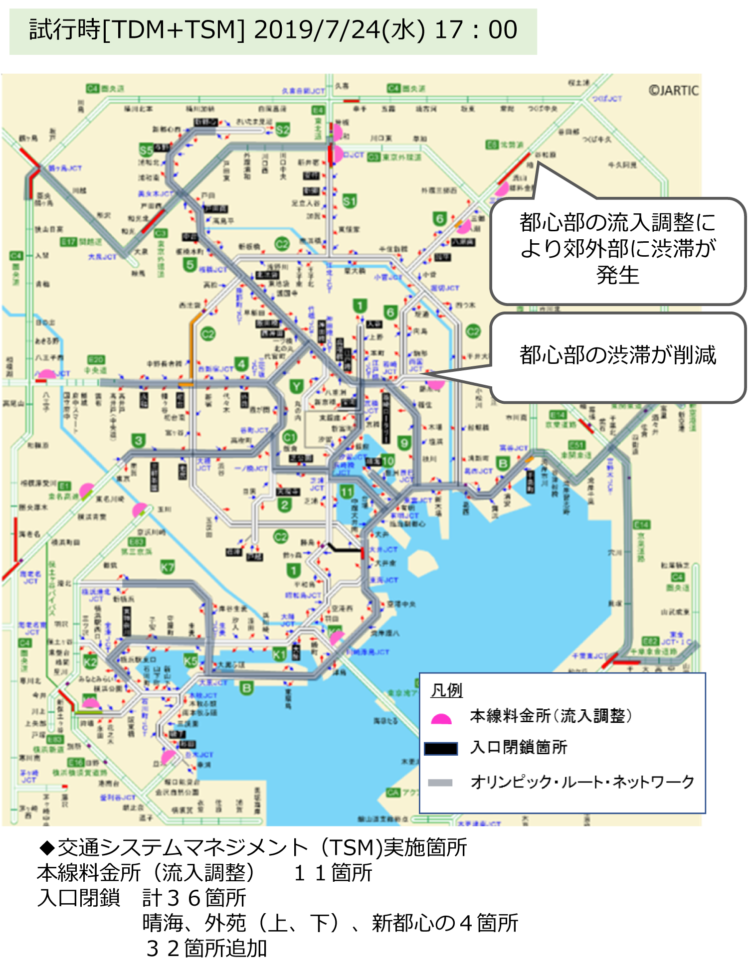 大規模な試行の結果、都心部の高速道路において渋滞が削減